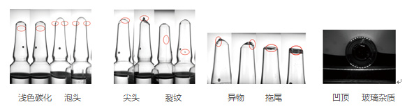 适用于药品生产线上灭菌前后的安瓿瓶外观缺陷检测。